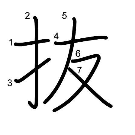 Hlavní radikál: 手 (64) Tahy: 7 obrázek | animace | tabulka