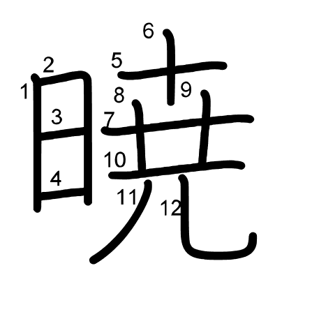 Hlavní radikál: 日 (72) Tahy: 12 obrázek | animace | tabulka