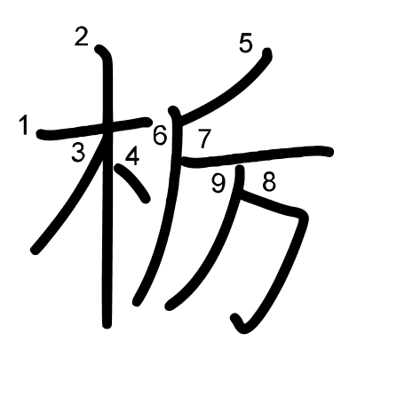 Hlavní radikál: 木 (75) Tahy: 9 obrázek | animace | tabulka