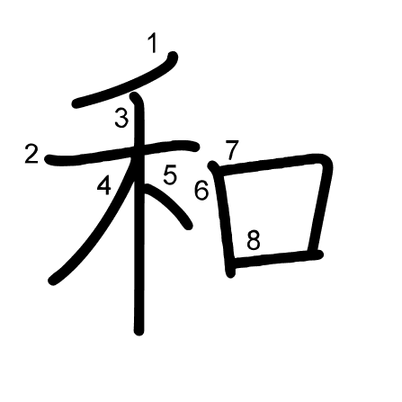 Čtení: ワ, オ, カ, やわ.らぐ, やわ.らげる, なご.む...
