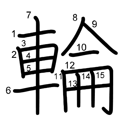 Hlavní radikál: 車 (159) Tahy: 15 obrázek | animace | tabulka