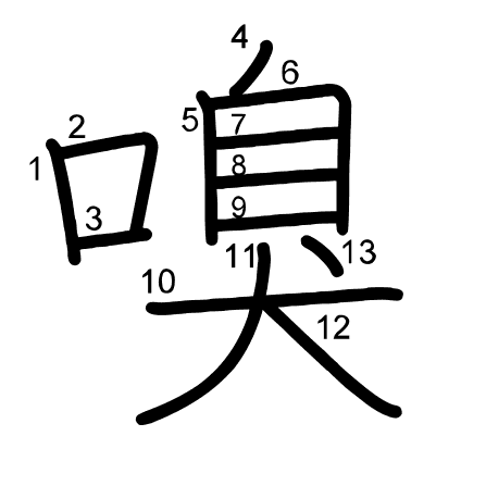 Hlavní radikál: 口 (30) Tahy: 13 obrázek | animace | tabulka