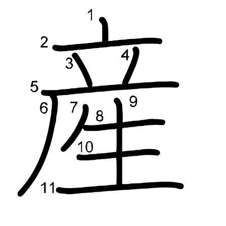 Hlavný radikál: 生 (100) Ťahy: 11 obrázok (png) | animácie (svg) | tabuľka (svg)