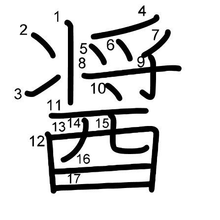 Hlavní radikál: 酉 (164) Tahy: 17 obrázek | animace | tabulka