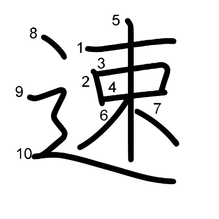 Hlavní radikál: 辵 (162) Tahy: 10 obrázek | animace | tabulka