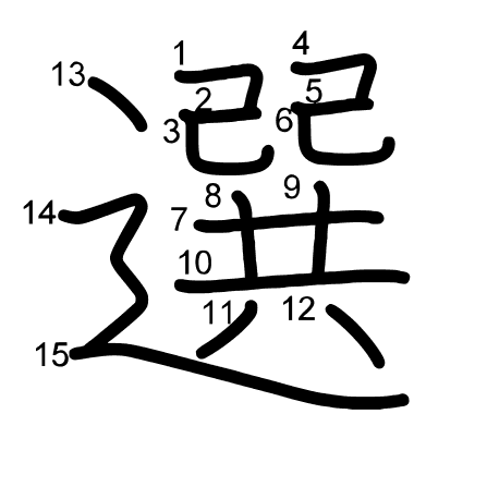 Hlavní radikál: 辵 (162) Tahy: 15 obrázek | animace | tabulka