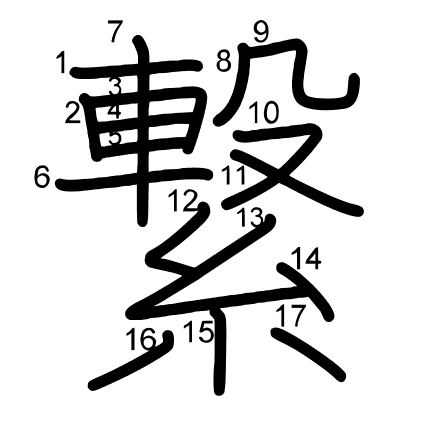 Hlavní radikál: 糸 (120) Tahy: 17 obrázek | animace | tabulka