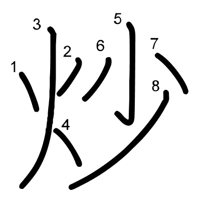 Hlavní radikál: 火 (86) Tahy: 8 obrázek | animace | tabulka